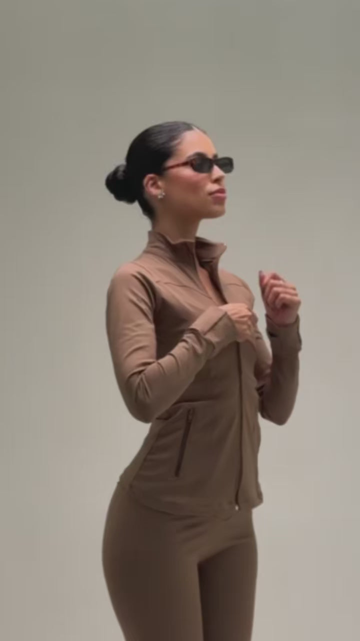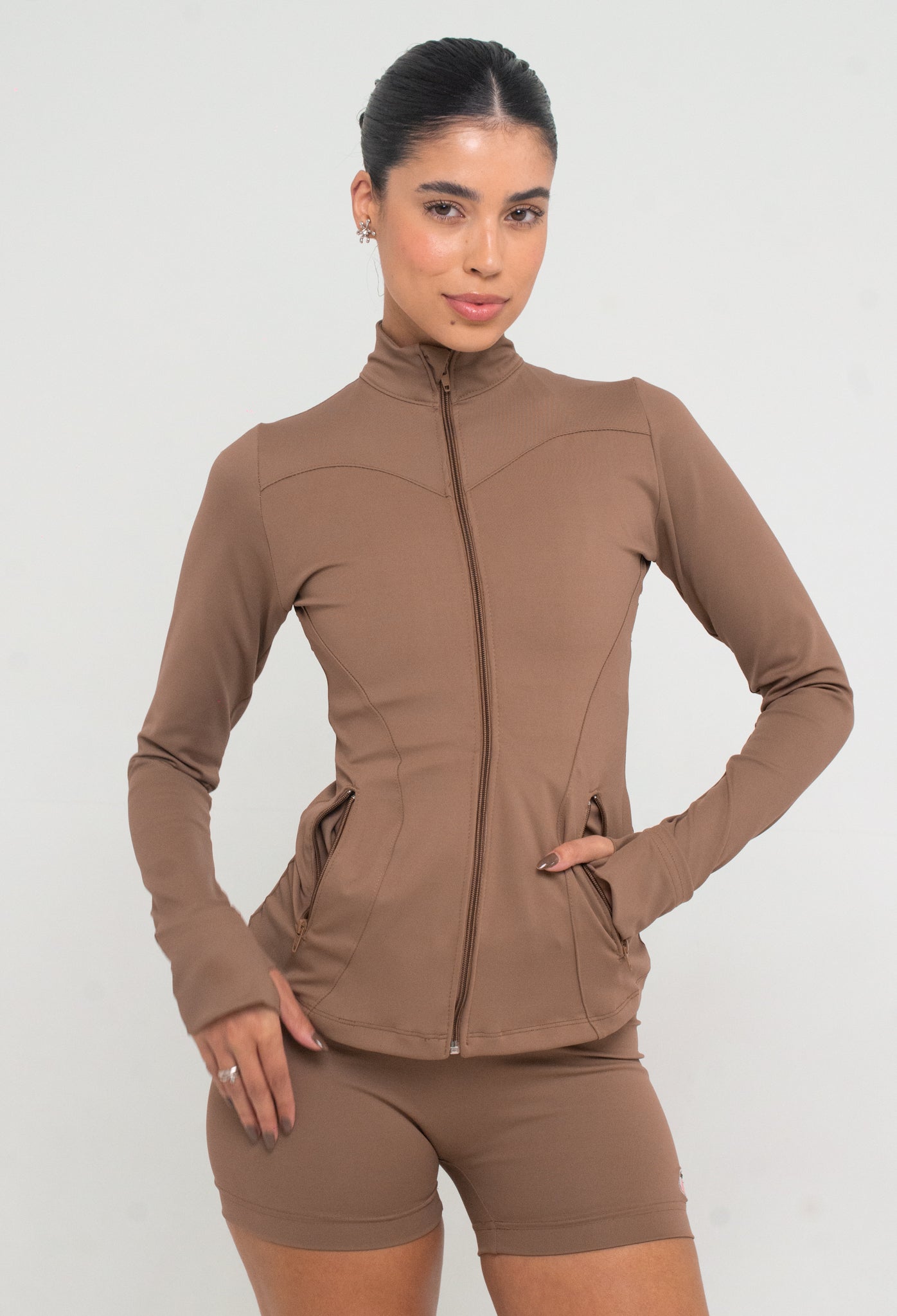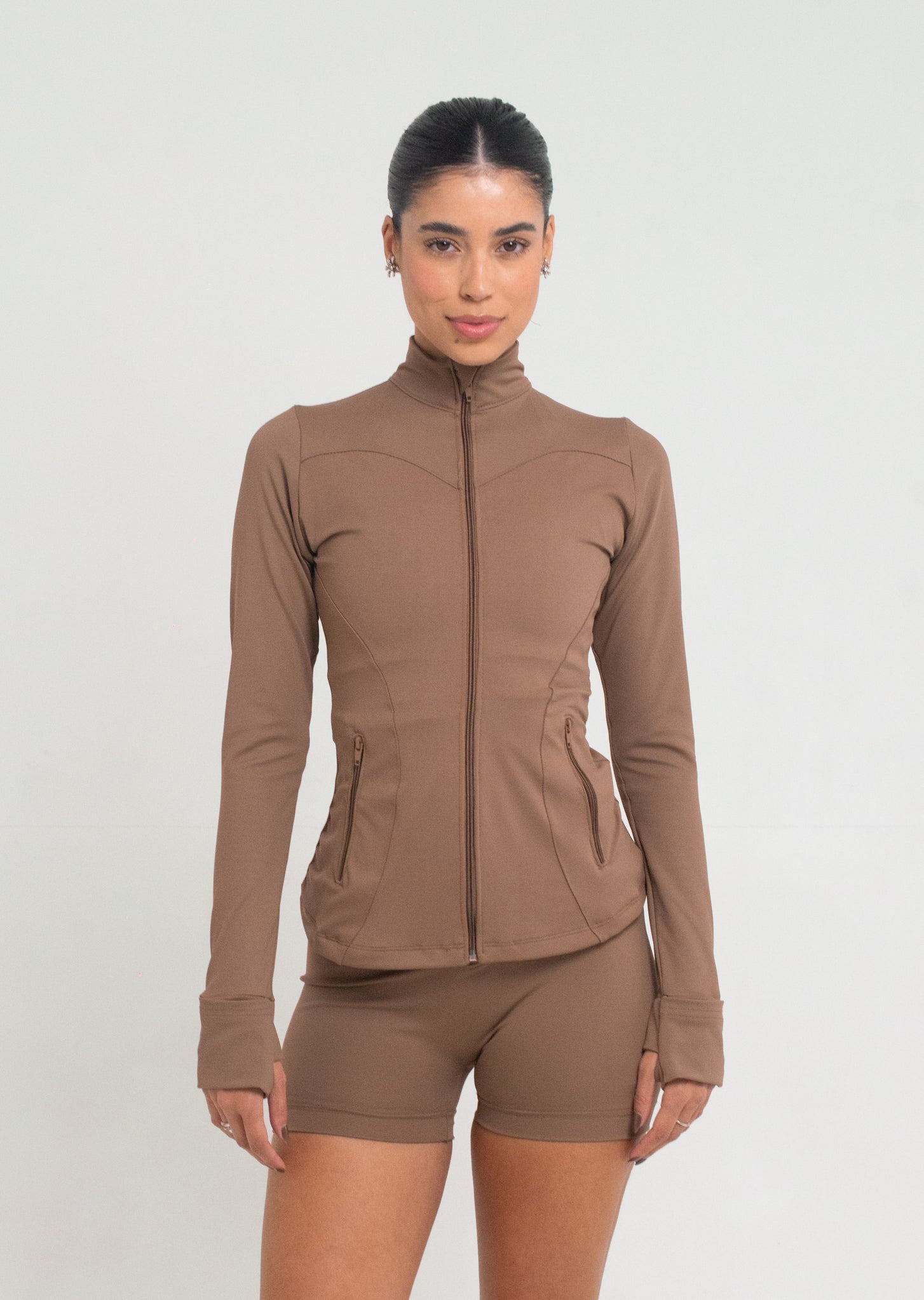 jaqueta compressora com bolso na cor marrone
