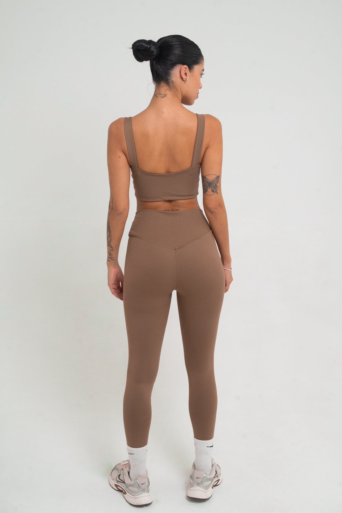 legging com cós transpassado na cor marrone